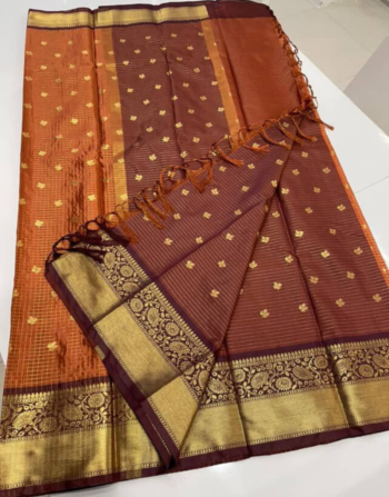 Rust Orange Micro Jari Checks Saree ₹2,179.00